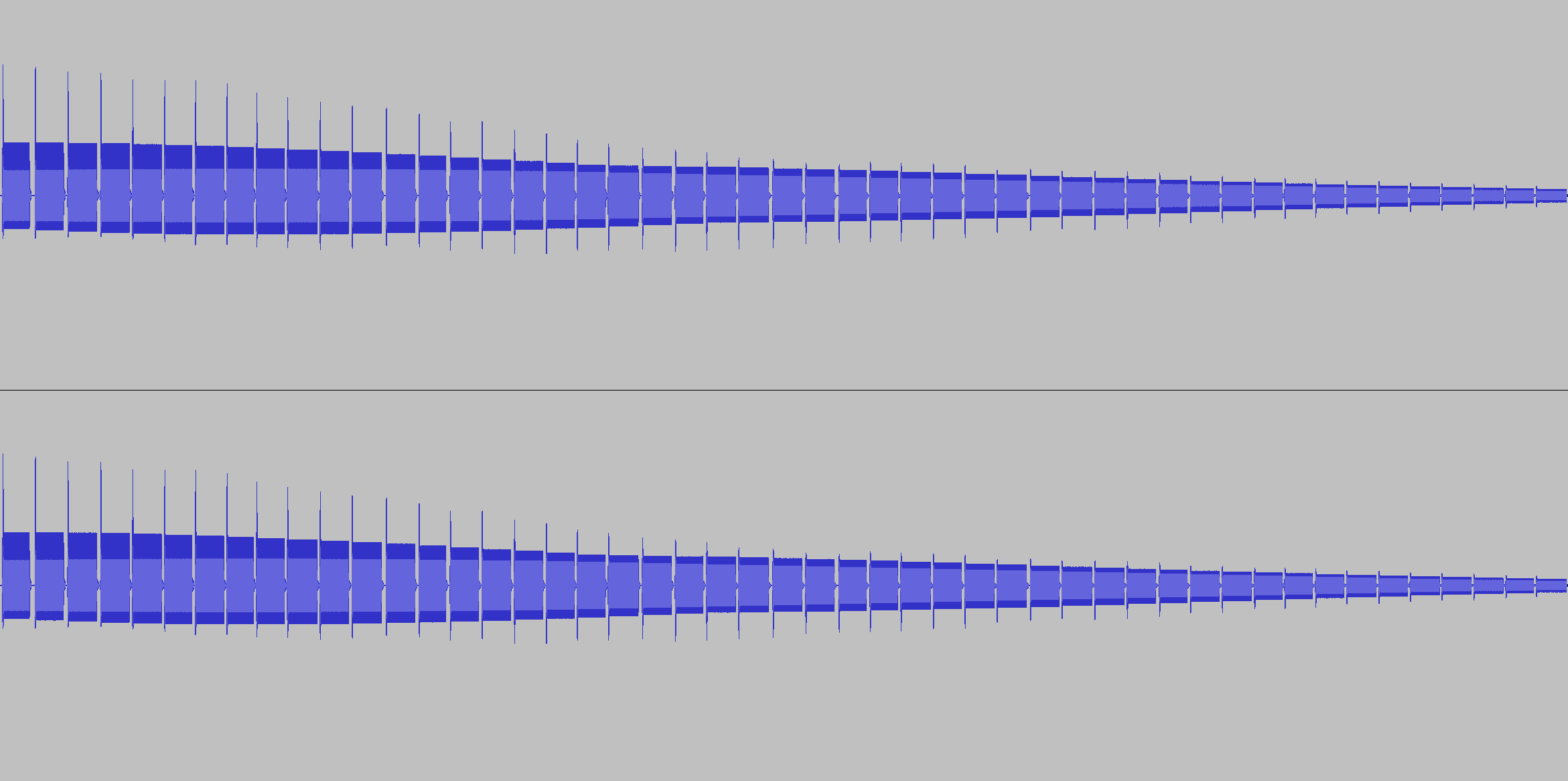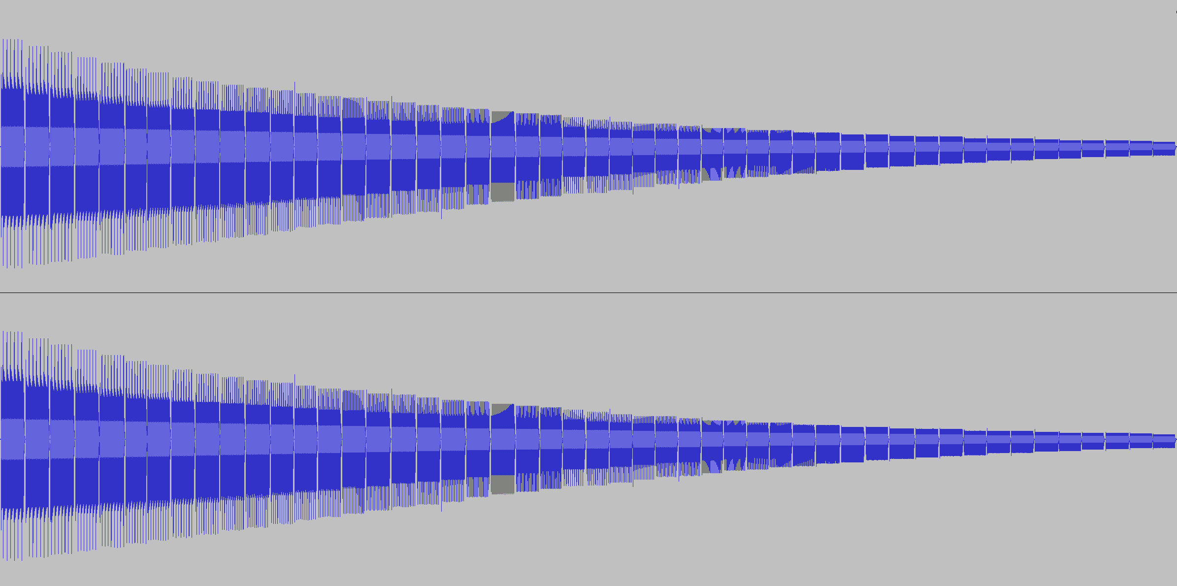 As can be seen from the full recording images, the notes decrease in volume quite significantly as they increase in pitch, and there is usually an irregular offset around the zero level. Rather than normalise every note, I deliberately left them 'as is' so they better reflect the source material.